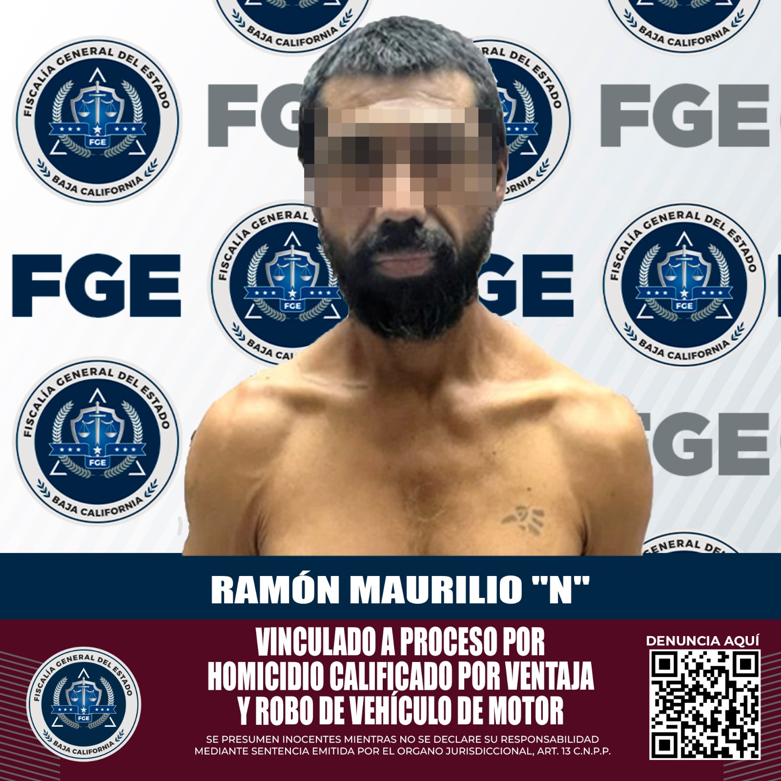 MEXICALI, B.C. A través de la presentación de pruebas contundentes, la Fiscalía General de Estado (FGE), logró la vinculación a proceso de Ramón Maurilio “N”, acusado de los delitos de homicidio calificado por ventaja y robo de vehículo.