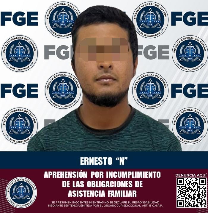 SAN QUINTÍN, B.C. Con base a indagatorias efectuadas por la Fiscalía Regional de San Quintín, se cumplimentó una orden judicial que pesaba en contra de Ernesto "N", por incumplir con la manutención de sus dos hijos.