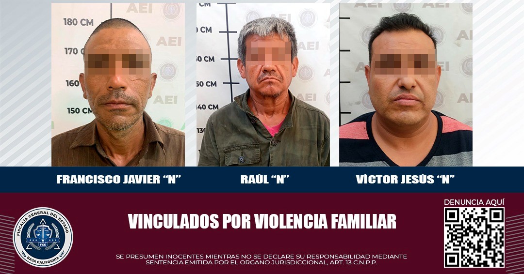 MEXICALI, B.C. La Fiscalía Regional de Mexicali, a través de la Unidad de Investigación con Detenidos Poniente y Detenidos Oriente, logró con base a las pruebas presentadas la vinculación de tres acusados por agredir física y psicológicamente a sus familiares.