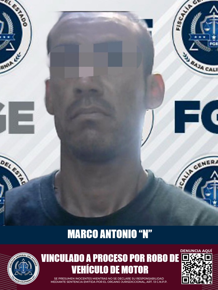 MEXICALI, B.C. La Unidad de Investigación de Robo de Vehículos, de la Fiscalía Regional de Mexicali, tras presentar las pruebas necesarias, logró que Marco Antonio “N” fuera vinculado a proceso por encontrarse en posesión de un vehículo que contaba con reporte de robo.