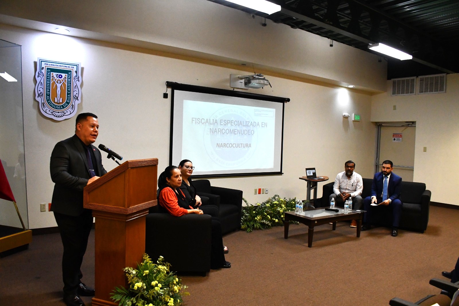 Durante octubre, se impartirán a los estudiantes universitarios pláticas sobre diversos temas, en esta ocasión se trató sobre la “Narcocultura”, participando activamente el titular de la Fiscalía Especializada en Narcomenudeo, Juan Carlos Pelayo Heredia, así como el área de acercamiento de Fiscalía con la comunidad a cargo de José Pedro Leyva, quien también abordó el tema de la denuncia de delitos.