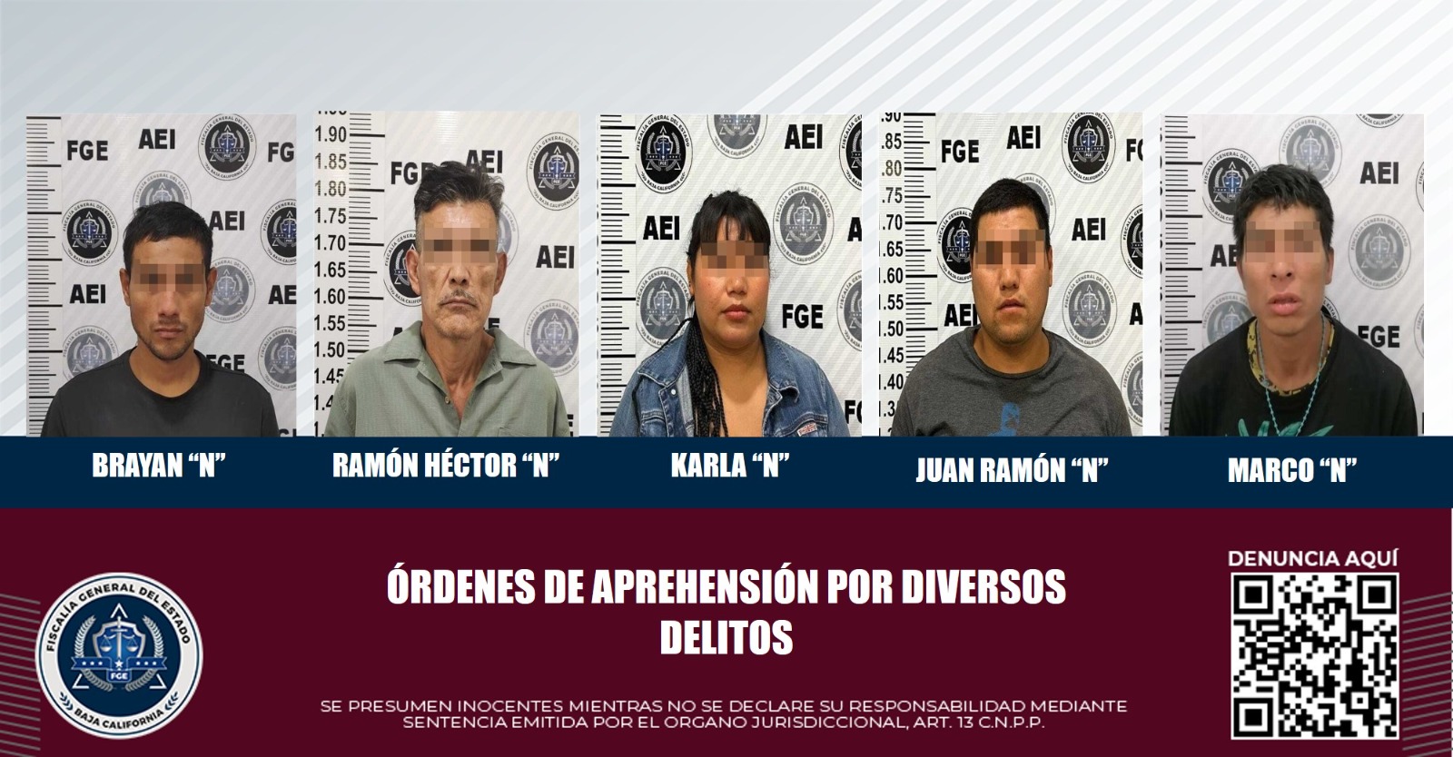 TIJUANA, B.C. Con el objetivo de capturar a quienes se encuentran prófugos de la justicia y que son investigados por algún tipo de delito, la Fiscalía General del Estado obtuvo y cumplimentó, recientemente, mandamientos judiciales por homicidio, robo, resistencia de particulares y narcomenudeo.