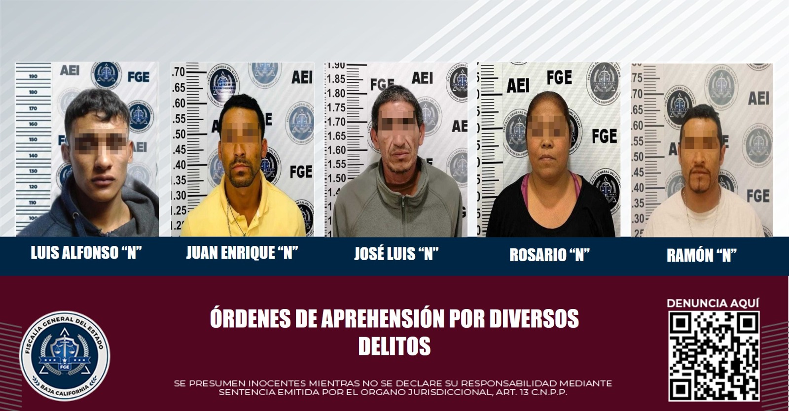 TIJUANA, B.C. Cuatro hombres y una mujer que contaban con orden de aprehensión quedaron a disposición de jueces de control, como parte de investigaciones que lleva a cabo la Fiscalía General del Estado.
