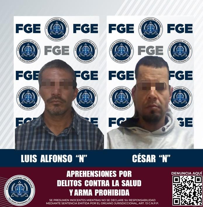 ENSENADA, B.C. Investigación efectuada por agentes de la Fiscalía General de Baja California, culminó con la cumplimentación de órdenes judiciales que pesaban en contra de un presunto narcomenudista y un sujeto que portaba un arma blanca.