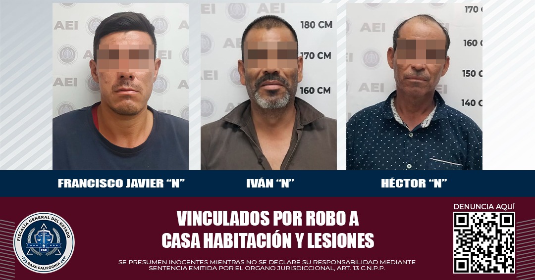 MEXICALI B.C. - Con base en la presentación de carpetas de investigación sólidas, la Fiscalía Regional de Mexicali, a través de la Unidad de Investigación Foránea Ciudad Guadalupe Victoria, logró la vinculación a proceso de tres imputados por diferentes delitos.