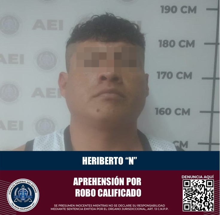 Al dar seguimiento a información recabada en gabinete y campo, los elementos de la Agencia Estatal de Investigación cumplimentaron una orden de aprehensión a Heriberto “N”, por el delito de robo calificado de dependiente.
