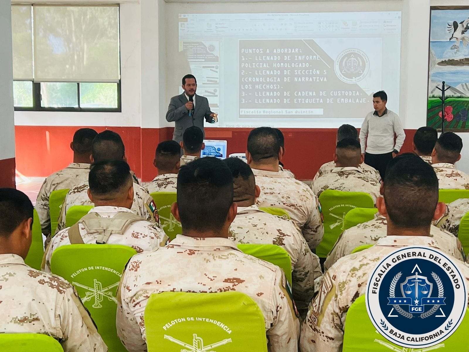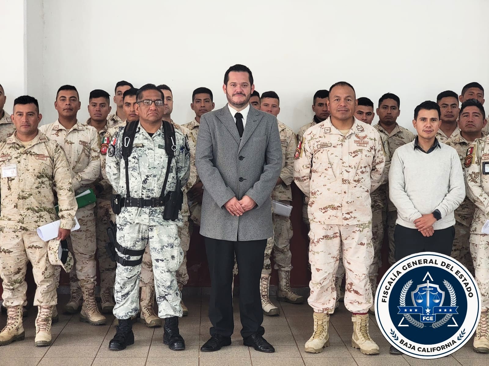 En este sentido, el Fiscal Regional de San Quintín, Fernando Maldonado Lamadrid, y Ministerios Públicos, capacitaron a elementos de la Secretaría de la Defensa Nacional (SEDENA) y Guardia Nacional (GN); actividad en la que se contó con la presencia de Alfredo Gutiérrez Rosado, Comandante del 67 Batallón de Infantería.