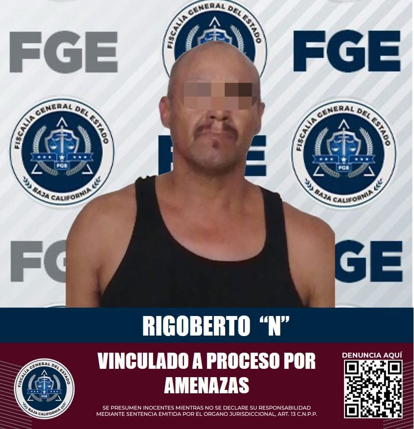 MEXICALI, B.C. Mediante el trabajo desempeñado por la Unidad con Detenidos Poniente de la Fiscalía Regional de Mexicali, fue posible la vinculación a proceso de Rigoberto “N” por presuntamente cometer el delito de amenazas.