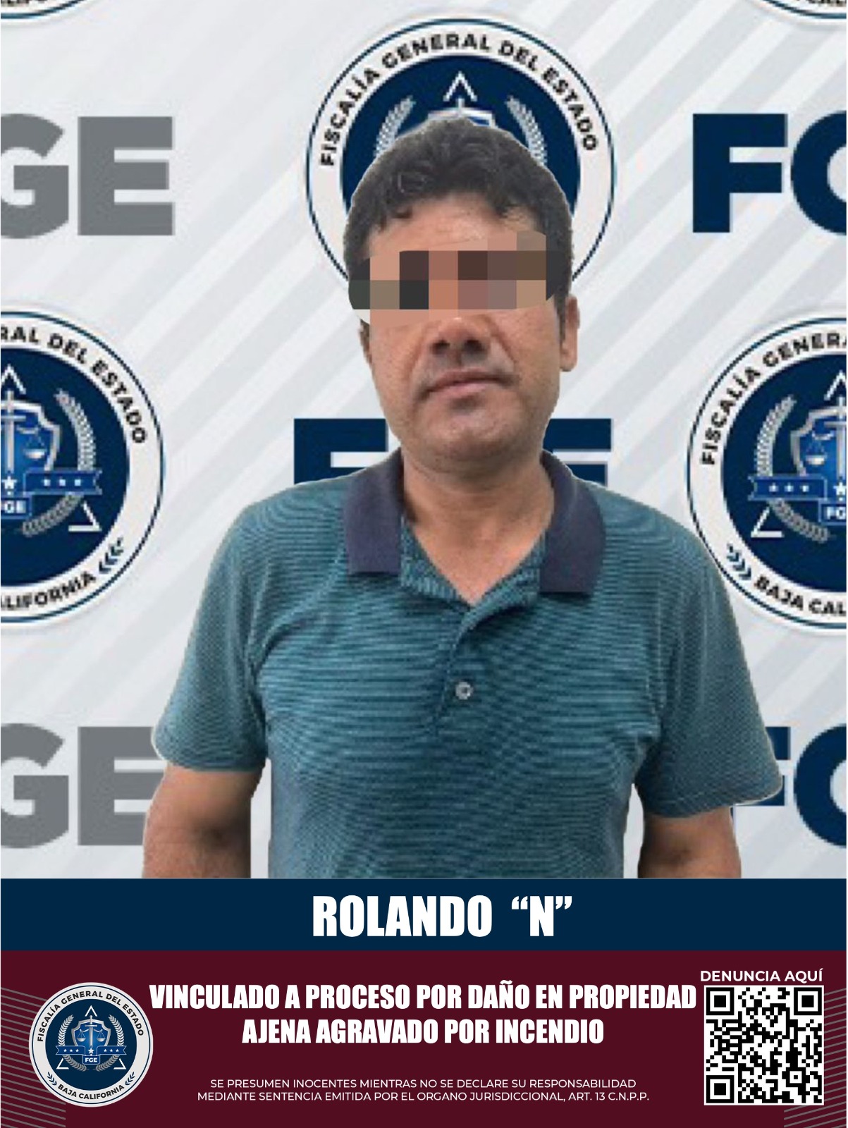 MEXICALI, B.C. La Fiscalía Regional de Mexicali, mediante el trabajo realizado en la integración de la carpeta de investigación, por la Unidad de Investigación de Delitos Patrimoniales, Sociedad, Estado y Justicia, obtuvo la vinculación a proceso de Rolando “N”, quien presuntamente cometió el delito de daño en propiedad ajena agravado por incendio.