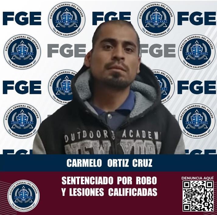 SAN QUINTÍN, B.C. La Fiscalía Regional de San Quintín, obtuvo una sentencia condenatoria de 6 años de prisión contra Carmelo Ortiz Cruz, por haber golpeado a un hombre al intentar robarle dinero, y en otro caso, por quebrar el vidrio de un auto y arrebatarle el celular al propietario del vehículo.