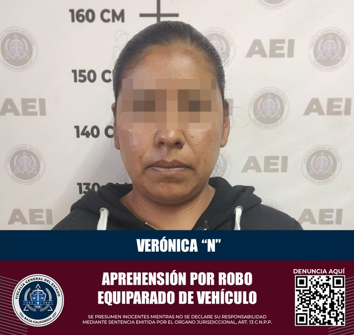 ENSENADA, B.C. Agentes del Grupo Especializado en Aprehensiones, de la Fiscalía General del Estado (FGE), capturaron a una mujer que presuntamente vendió un automóvil de procedencia ilícita.