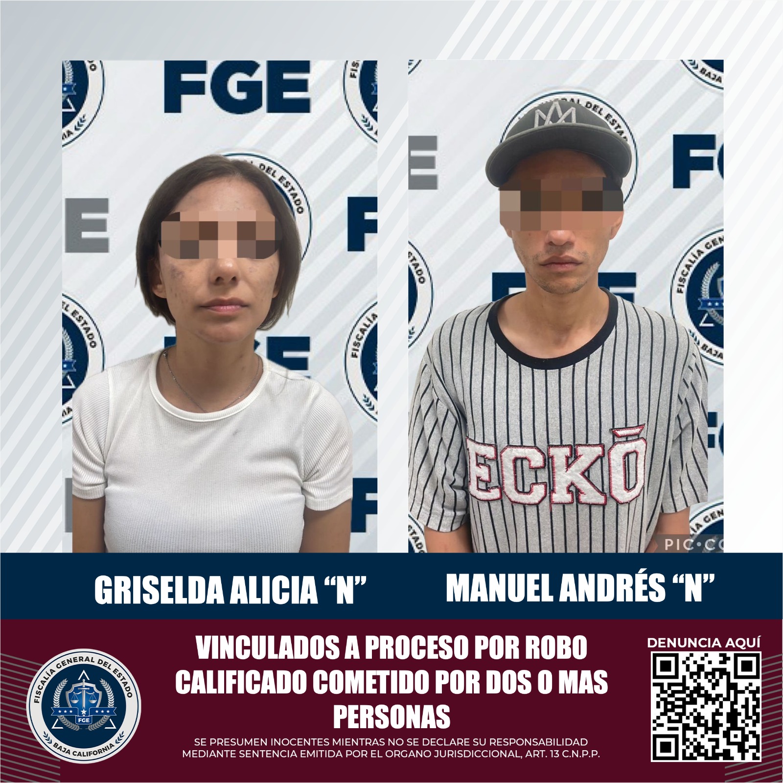 MEXICALI, B.C. La Unidad de Investigación de Delitos de Robo Poniente de la Fiscalía Regional de Mexicali, logró que un hombre y una mujer fueran vinculados a proceso por el delito de robo calificado cometido por dos o más personas.
