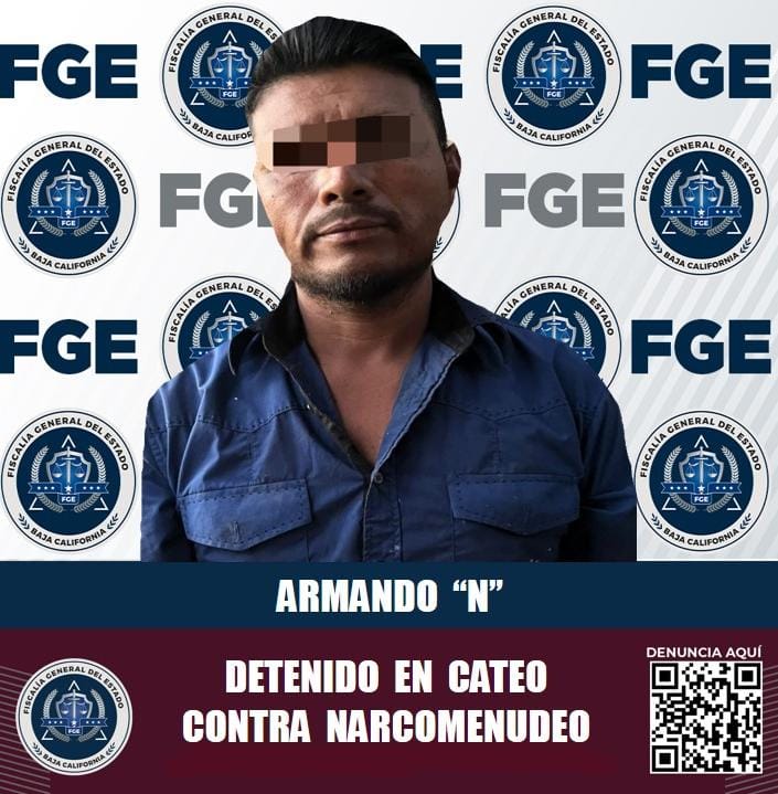 Durante la diligencia realizada en el predio ubicado en avenida Paralelo 28, en la delegación de Camalú, elementos de la Fiscalía aseguraron a Armando “N”, por su presunta responsabilidad en la comisión de delitos contra la salud.
