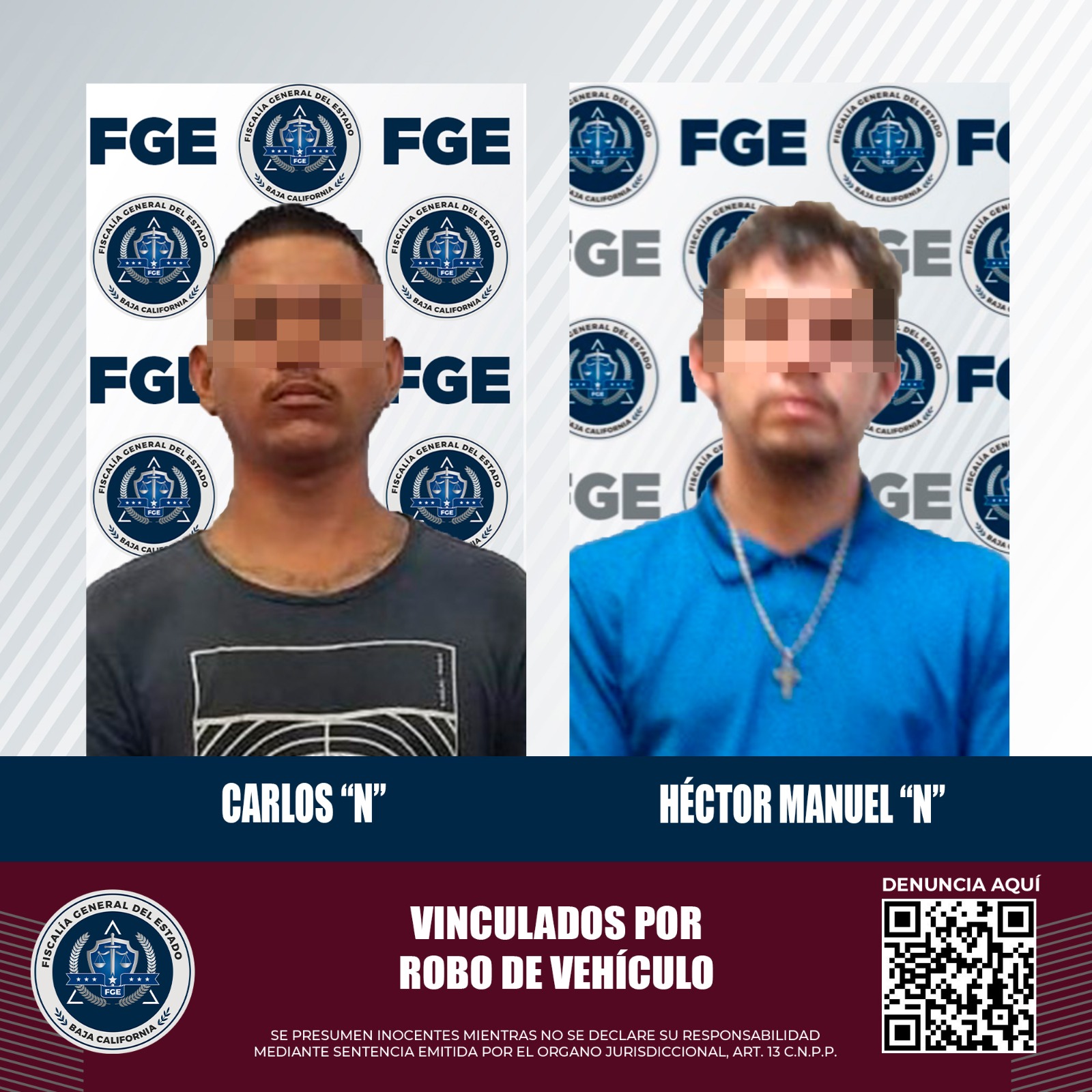 MEXICALI, B.C. Con base al trabajo realizado por la Fiscalía Regional de Mexicali, a través de la Unidad de Investigación de Robo de Vehículos, dos hombres presuntamente relacionados en este delito, fueron vinculados a proceso.