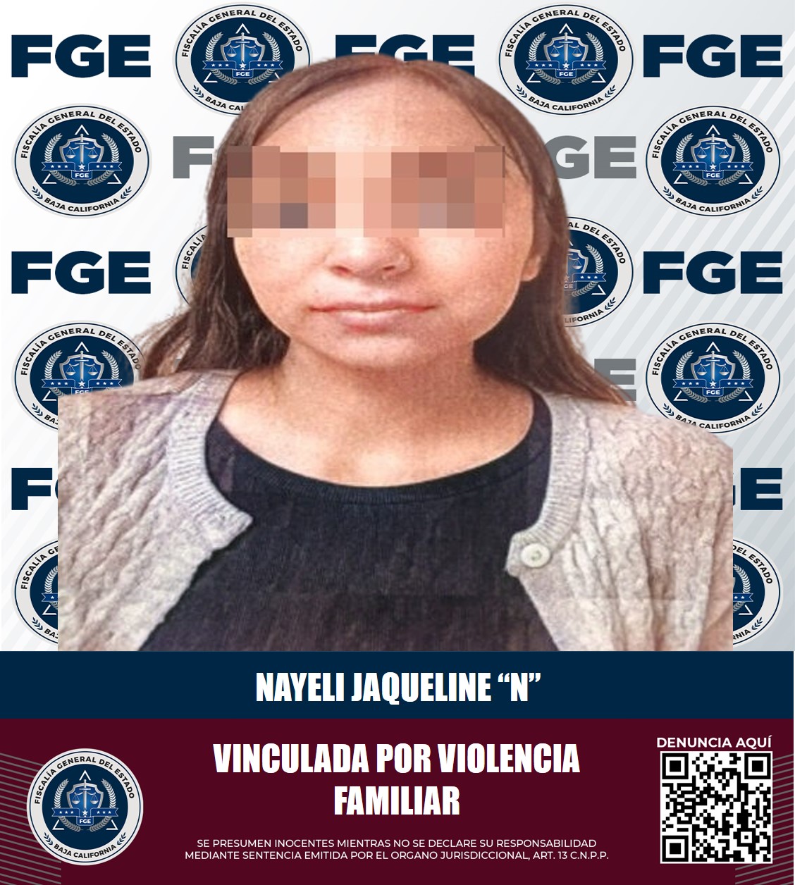 TECATE, B.C. Pruebas aportadas por la Fiscalía Especializada en Delitos Contra Mujeres por Razón de Género, permitieron que Nayeli Jaqueline “N”, fuera vinculada a proceso por el delito de violencia familiar, por hechos registrados el 3 de marzo del presente año.