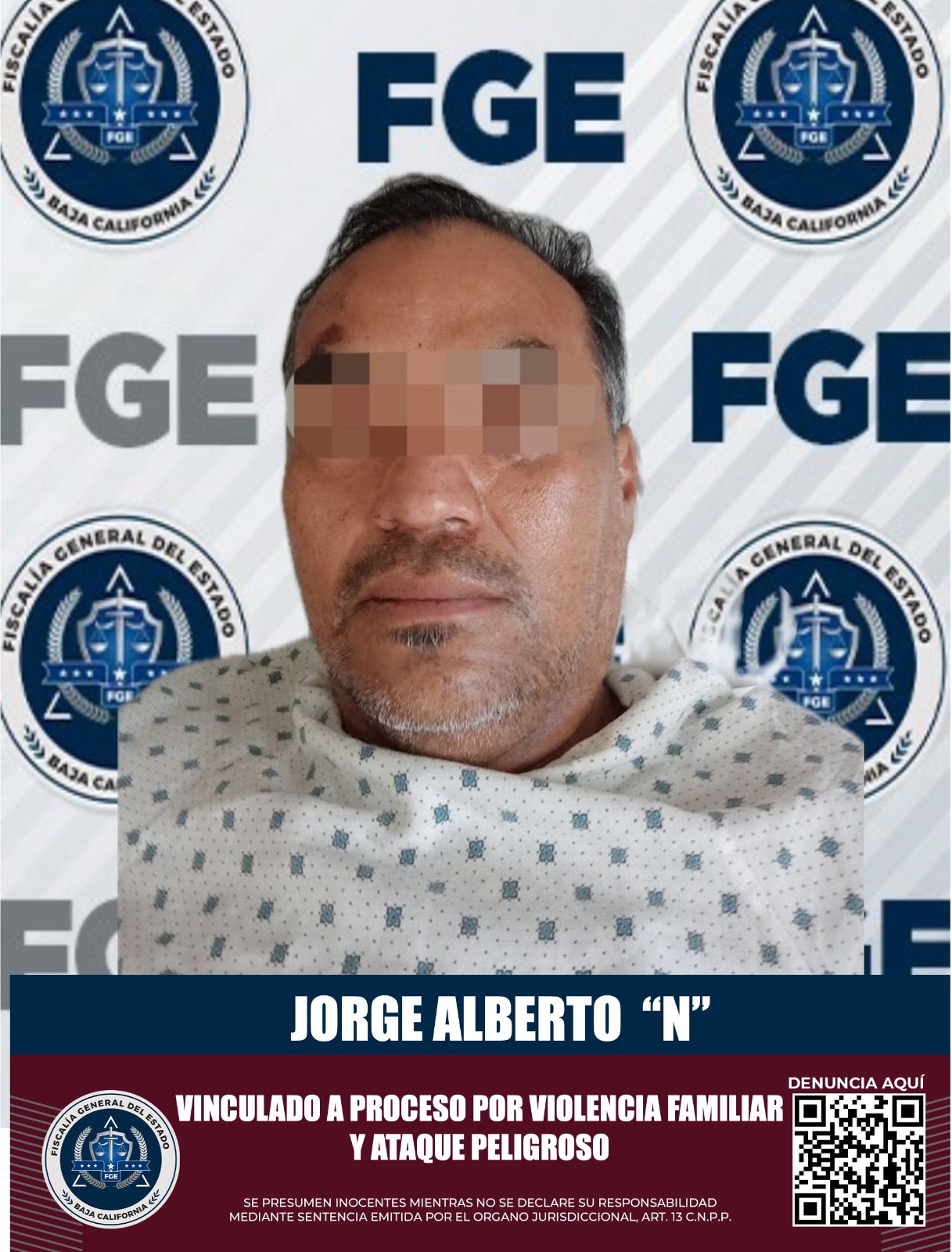 MEXICALI, B.C. 28 DE OCTUBRE DE 2023.- Mediante el trabajo desempeñado por la Unidad con Detenidos Poniente, adscrita a la Fiscalía Regional de Mexicali, se obtuvo la vinculación a proceso en contra de Jorge Alberto “N”, por presuntamente cometer el delito de violencia familiar y ataque peligroso.