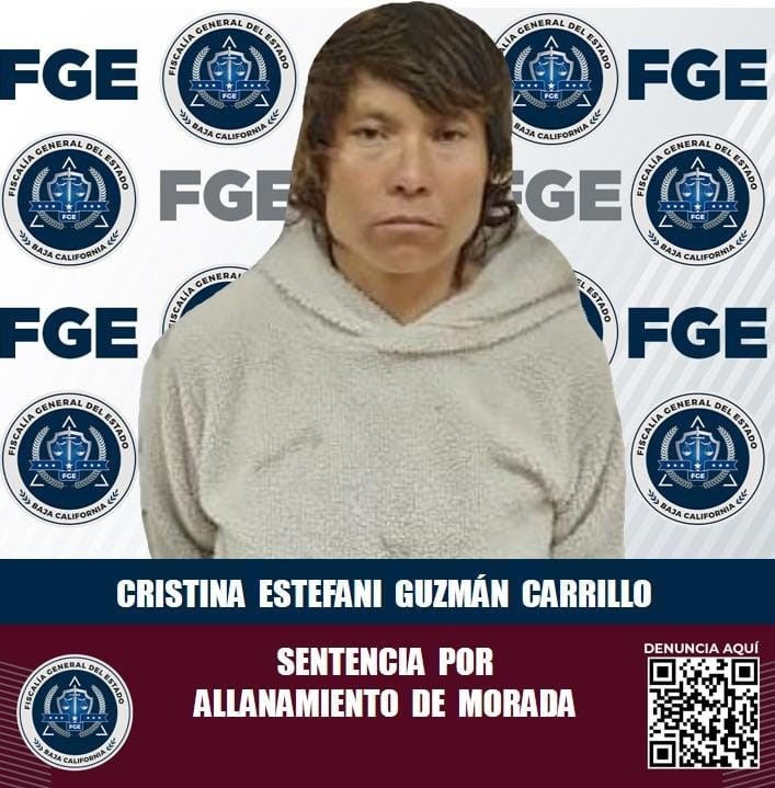 SAN QUINTÍN, B.C. La Fiscalía Regional de San Quintín, obtuvo una sentencia condenatoria 6 meses de prisión contra una mujer, quien, sin consentimiento de quien legalmente pueda otorgarlo, ingresó a un domicilio.