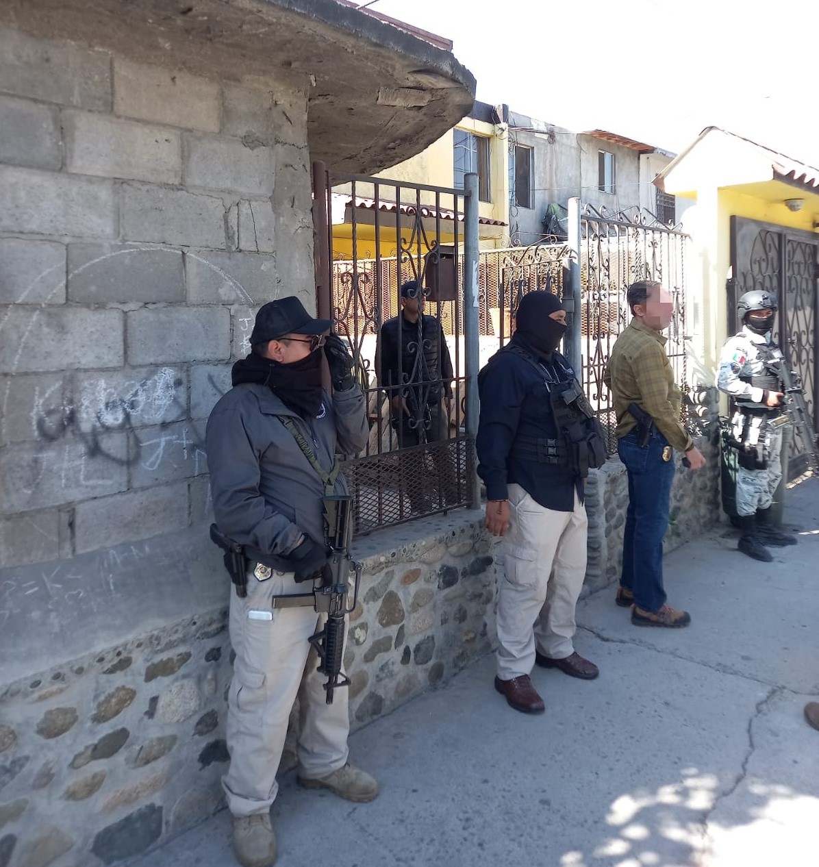 Con información obtenida en las investigaciones se realizó en esta ocasión un cateo autorizado por un Juez de Control, en un domicilio de la calle Salvador Martínez de la colonia Fidel Velázquez en Tijuana, Baja California.