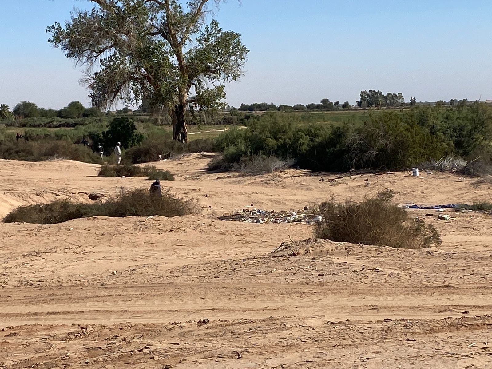 Por último, los participantes en esta búsqueda se trasladaron a un tercer punto, siendo un terreno con características de monte y arenal ubicado en el ejido Tula, en donde se realizó exploración a pie tierra.