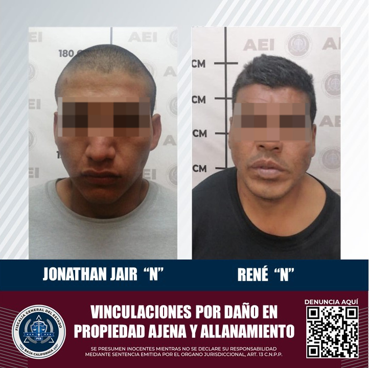 ENSENADA, B.C. Con base en datos de prueba, la Fiscalía Regional de Ensenada logró que jueces de control inicien procesos penales contra dos sujetos detenidos por causar daños e ingresar ilícitamente a establecimientos comerciales de la localidad.