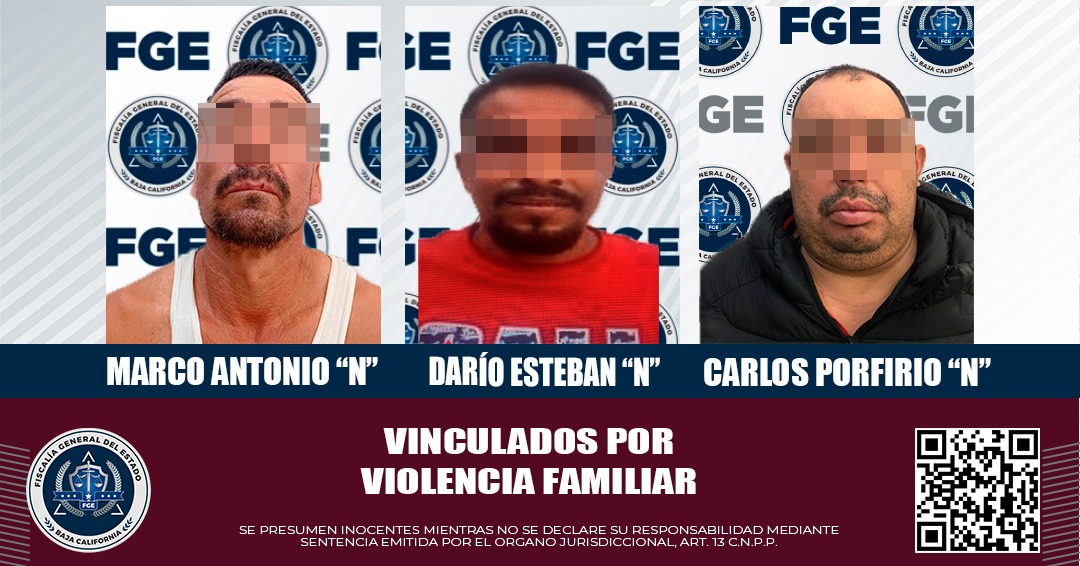 MEXICALI, B.C. Tres hombres acusados de agredir a familiares, fueron vinculados a proceso con base a los elementos de prueba presentados por la Fiscalía Regional de Mexicali, a través de la Unidad de Investigación con Detenidos Poniente.