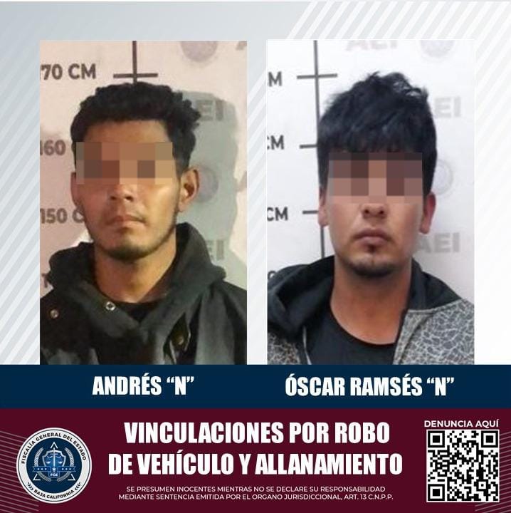 ENSENADA, B.C. La Fiscalía Regional de Ensenada obtuvo la vinculación a proceso de dos sujetos que, el pasado 3 de noviembre, resultaron detenidos tras presuntamente cometer ilícitos en distintos puntos de la ciudad.