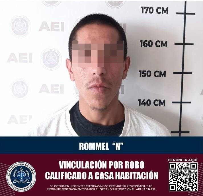 ENSENADA, B.C. Por el delito de robo calificado a casa habitación, la Fiscalía Regional de Ensenada logró la vinculación a proceso de un hombre que presuntamente sustrajo múltiples objetos y aparatos de una vivienda situada en la colonia Emiliano Zapata; hecho por el cual seguirá en prisión.