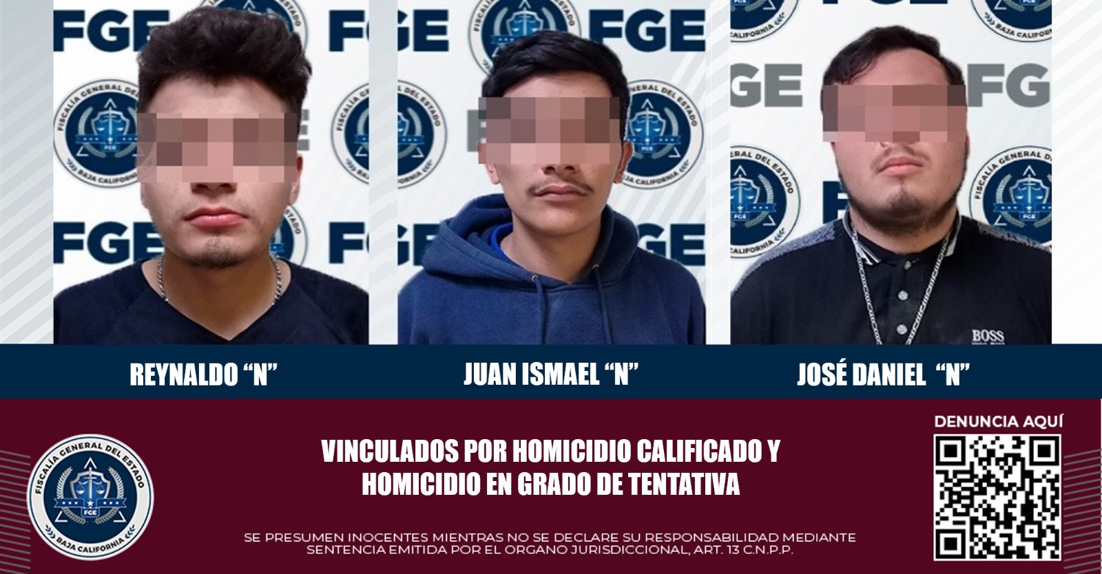 TECATE, B.C. A través de diversos datos de prueba presentados por la Fiscalía General del Estado ante un Juez de Control, se obtuvo la vinculación a proceso de Reynaldo "N", Juan Ismael "N" y José Daniel "N", implicados en los hechos violentos registrados en el panteón Renacimiento de la ciudad de Tecate.