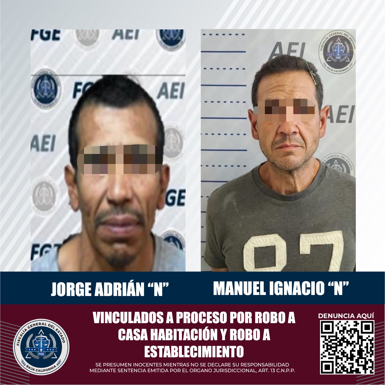 MEXICALI, B.C. La Fiscalía Regional de Mexicali, a través de la Unidad de Investigación de Robos Poniente, obtuvo la vinculación a proceso de dos individuos por el delito de robo en diversas modalidades.