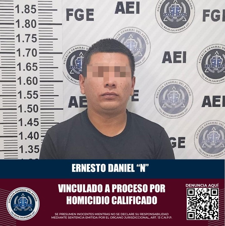 TIJUANA, B.C. La Fiscalía General del Estado de Baja California, a través del Ministerio Público, ha logrado que Ernesto Daniel "N", conocido como "El Tetos", quede bajo prisión preventiva, enfrentando acusaciones por el delito de homicidio calificado con ventaja.