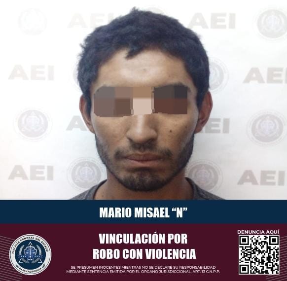 El individuo identificado como Mario Misael “N” se encuentra recluido bajo la medida cautelar de prisión preventiva, por el delito de robo calificado cometido en establecimiento comercial con servicio al público ejecutado con violencia.