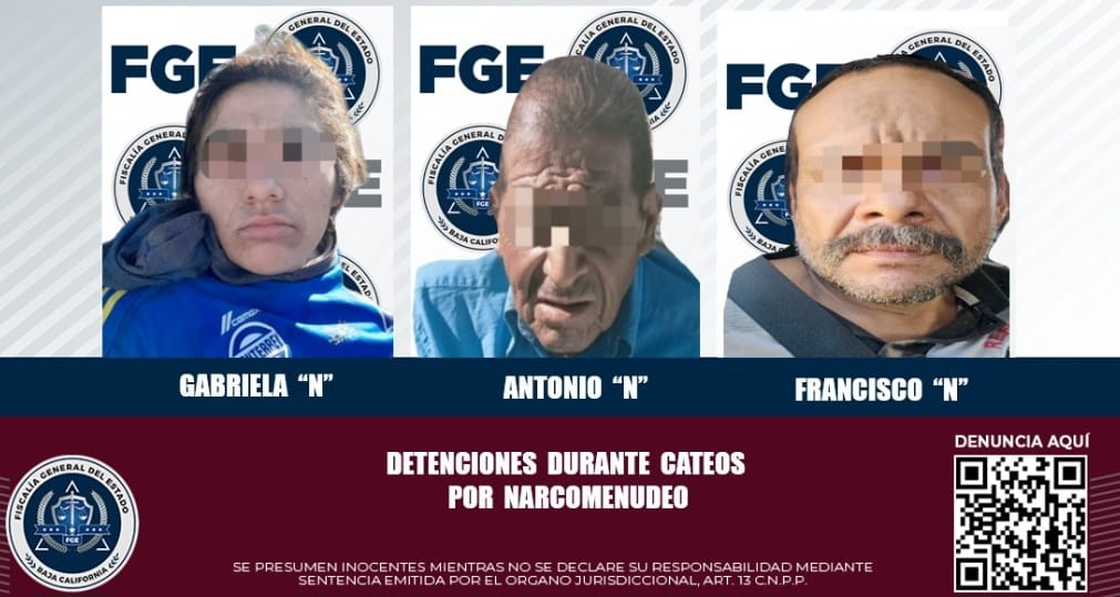 Finalmente, tres personas identificadas como Antonio “N” de 71 años, Gabriela "N" de 22 años y Francisco "N" de 47 años de edad, quedaron asegurados durante la inspección de un predio situado en el ex ejido Chapultepec; los agentes de la AEI les decomisaron la cantidad de siete envoltorios con cristal y dos envoltorios con lo que se presume es cocaína.