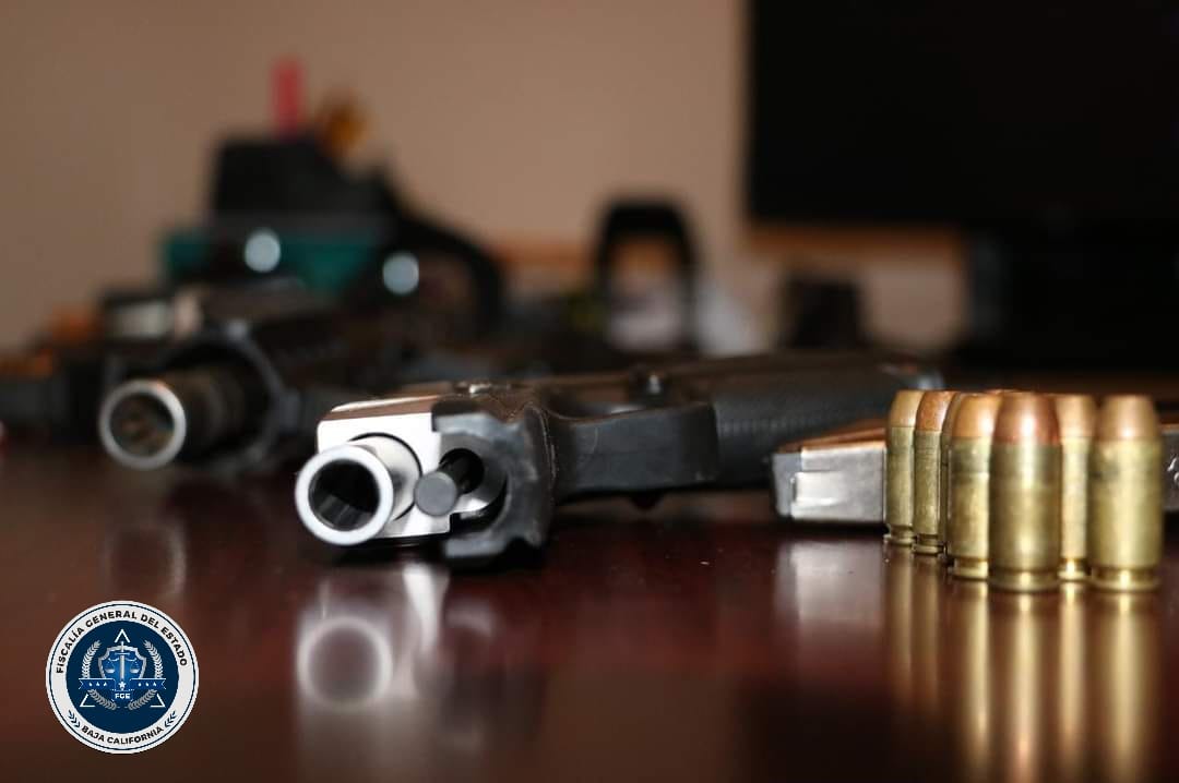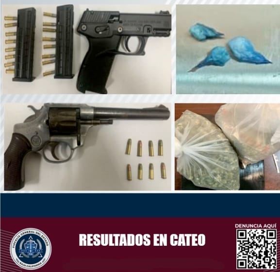 Agentes de la Fiscalía decomisaron armas de fuego y drogas durante cateos contra narcomenudeo en Ensenada