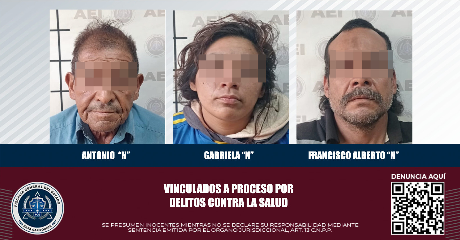 ENSENADA, B.C. Actos de investigación realizados por la Fiscalía General del Estado, permitieron que tres personas quedaran bajo proceso por delitos contra la salud.