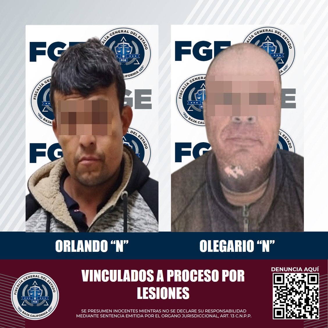TECATE, B.C. La Fiscalía Regional de Tecate, a través de la labor de investigación realizada por la Unidad de Tramitación Masiva de Causas y la Unidad de Investigación de Delitos con Detenido, logró la vinculación a proceso de dos sujetos acusados del delito de lesiones.
