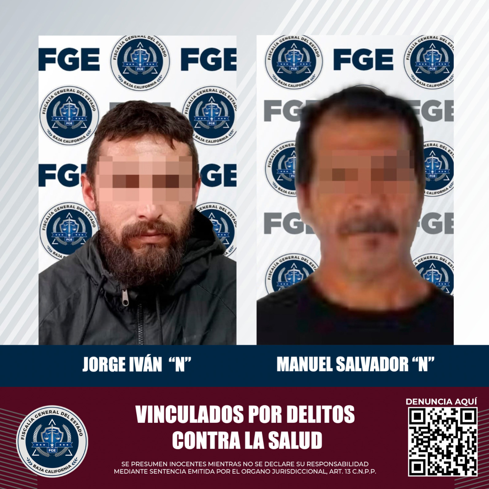 ENSENADA, B.C. La Fiscalía General del Estado logró vincular a proceso a dos sujetos que, en distintos hechos, fueron detenidos en poder de droga.