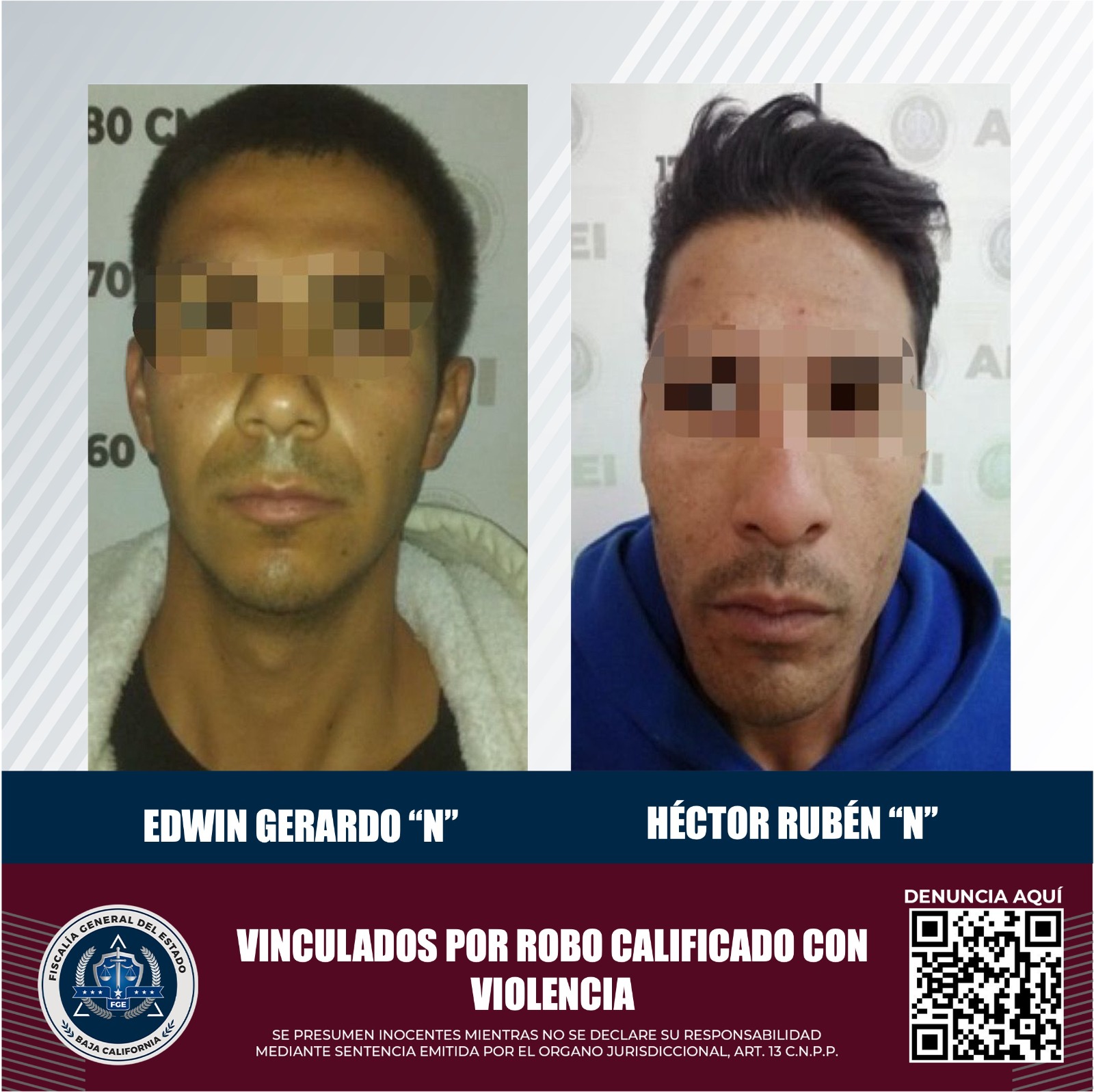 MEXICALI, B.C. Mediante el trabajo desempeñado en la integración de las carpetas de investigación, a cargo de la Unidad con Detenidos Oriente, de la Fiscalía Regional de Mexicali, se obtuvo la vinculación a proceso de dos sujetos por la presunta comisión del delito de robo con violencia.