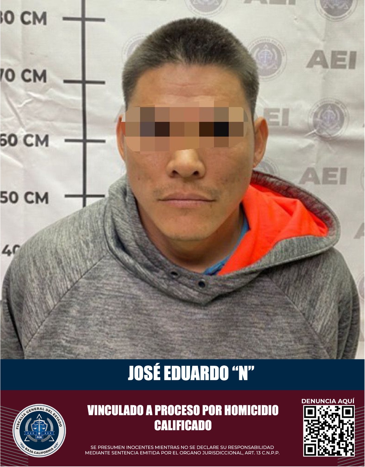 MEXICALI, B.C. La Fiscalía Especializada en Delitos Contra la Vida, de la Fiscalía General del Estado, obtuvo la vinculación a proceso de José Eduardo “N”, alias “El Calucha”, por el delito de homicidio calificado por ventaja.