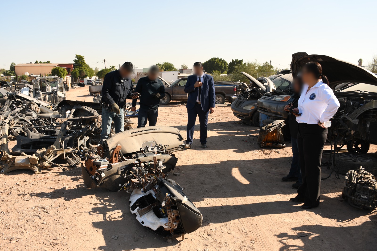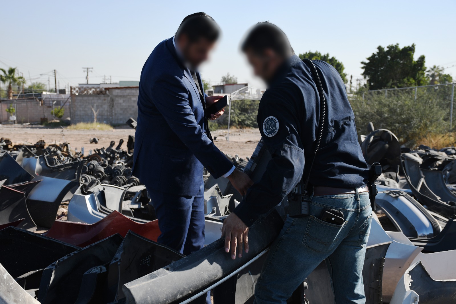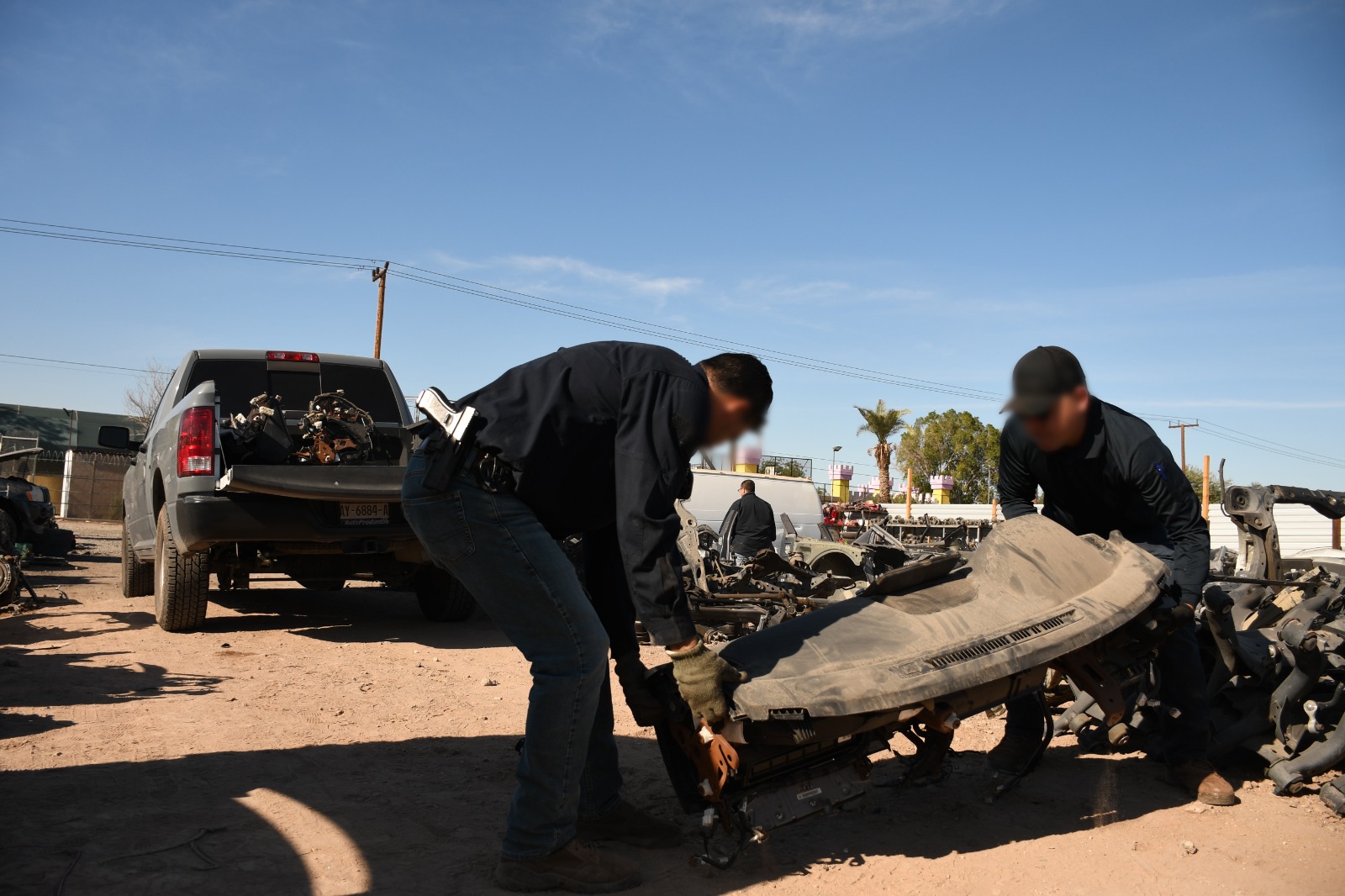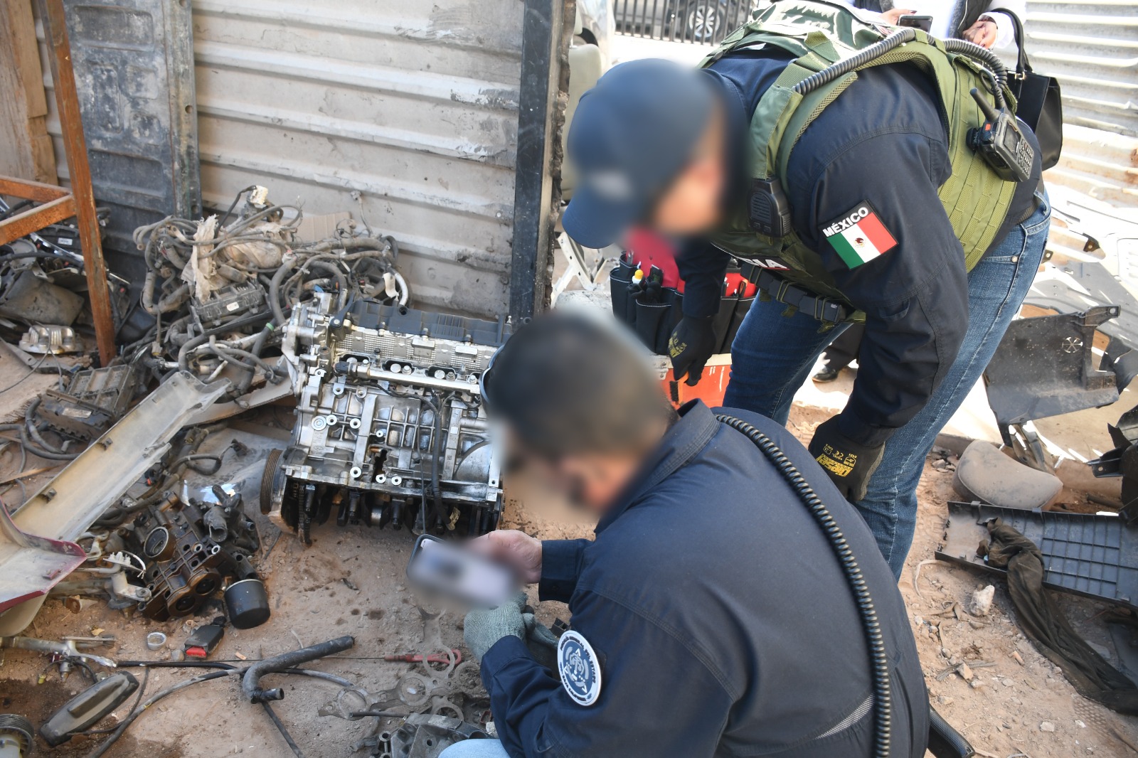 MEXICALI, B.C. Continuando con la estrategia implementada para el combate al robo de vehículos, elementos de la Agencia Estatal de Investigación (AEI), realizaron cateos simultáneos en predios ubicados en la colonia Frontera.