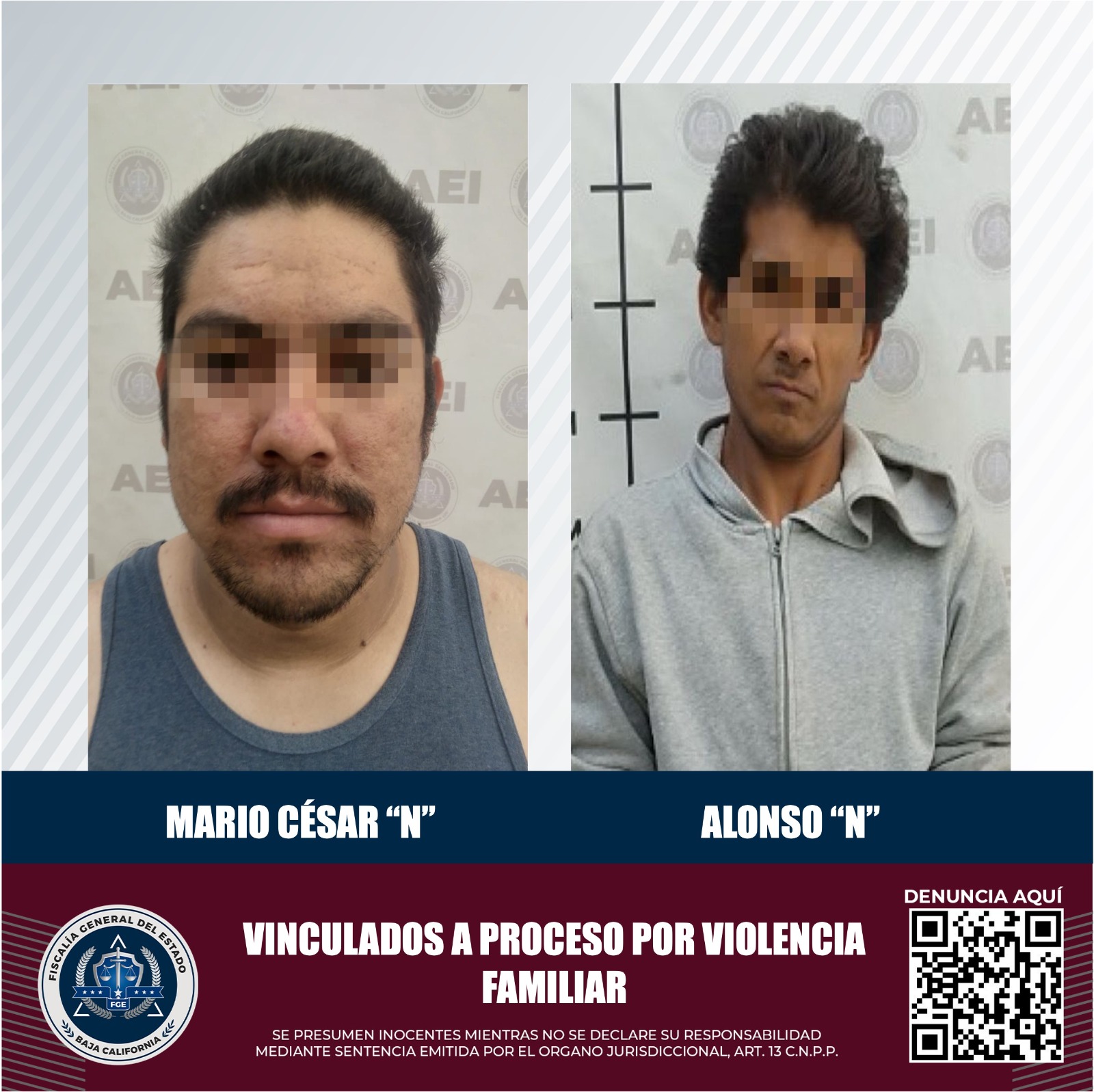 MEXICALI, B.C. La Fiscalía Regional de Mexicali, a través de la Unidad de Investigación con Detenido Poniente, obtuvo en audiencias por separado, vinculación a proceso de dos hombres, quienes presuntamente cometieron el delito de violencia familiar.