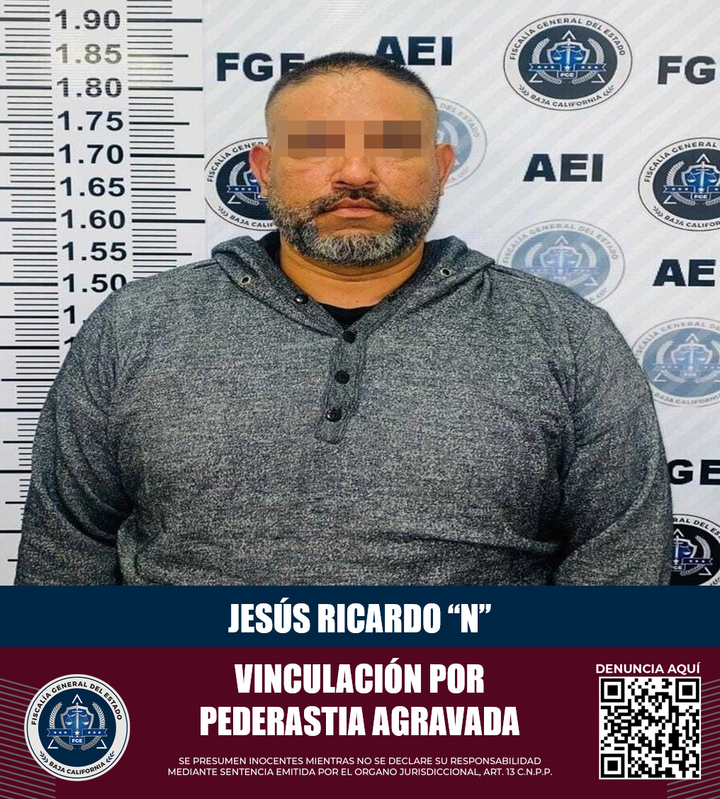 TIJUANA, B.C. Con el propósito de garantizar justicia para las personas que han sido víctimas de delitos, especialmente cuando se trata de menores de edad, la Fiscalía General del Estado a través de diversas labores de investigación logró someter a proceso penal a Jesús Ricardo “N”, acusado del delito de pederastia agravada.