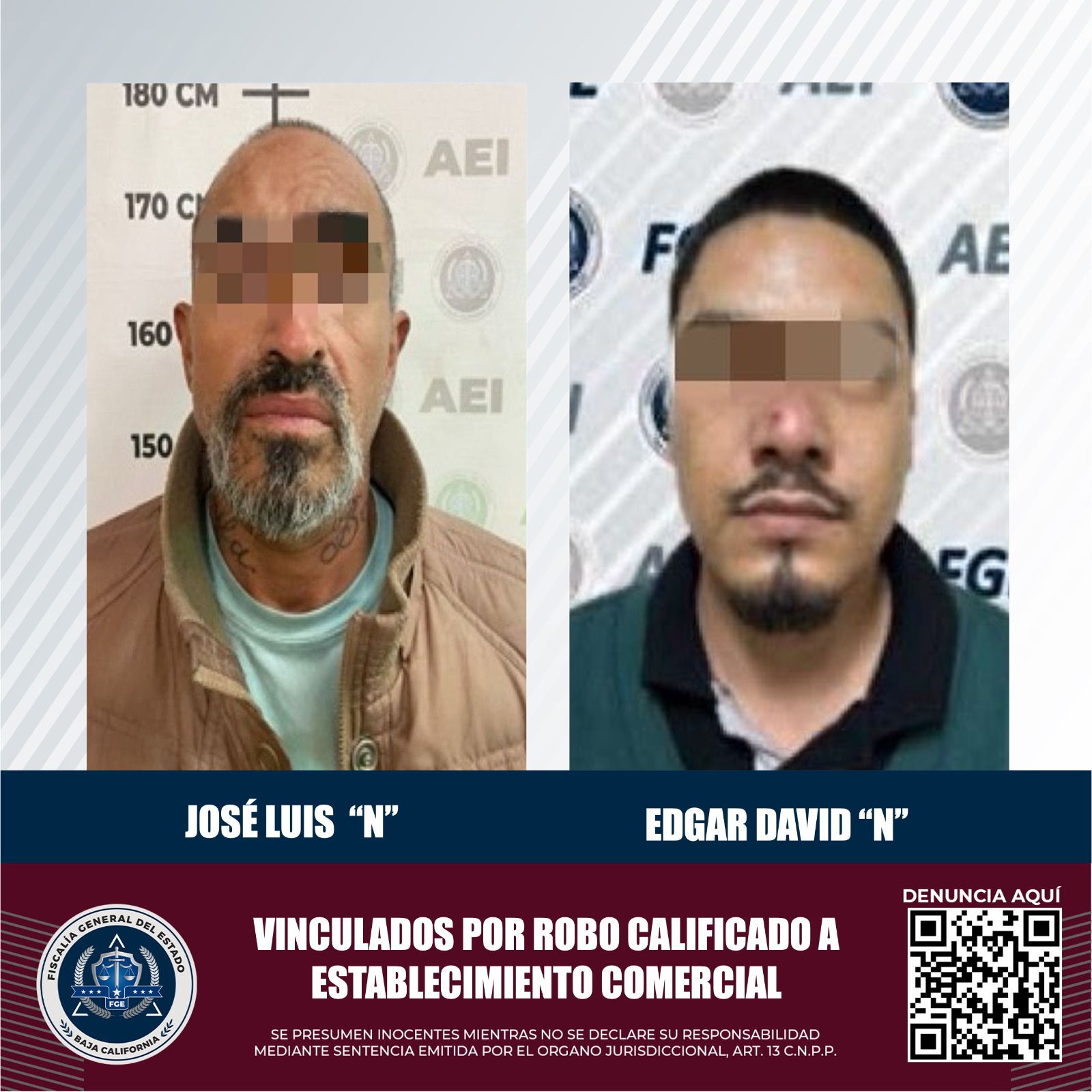 MEXICALI, B.C. En hechos por separado, dos sujetos fueron vinculados a proceso por el delito de robo calificado a establecimiento comercial, mediante el trabajo desempeñado en la integración de los expedientes realizados por las Unidades de Investigación de Robos Poniente y con Detenidos Oriente, de la Fiscalía Regional de Mexicali.