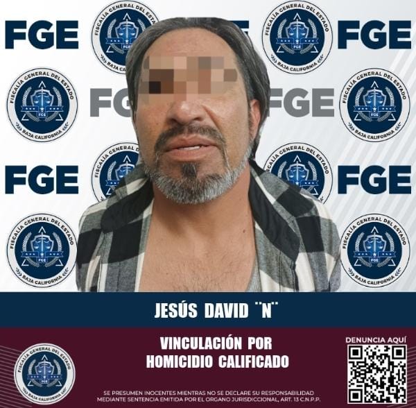 ENSENADA, B.C. Agentes investigadores de la Fiscalía General del Estado (FGE), obtuvieron vinculación a proceso y prisión preventiva contra Jesús David “N”, alias “El Tata”, acusado de homicidio calificado, presuntamente cometido en agravio de un hombre, quien, tras ser golpeado, fue sepultado en un patio.
