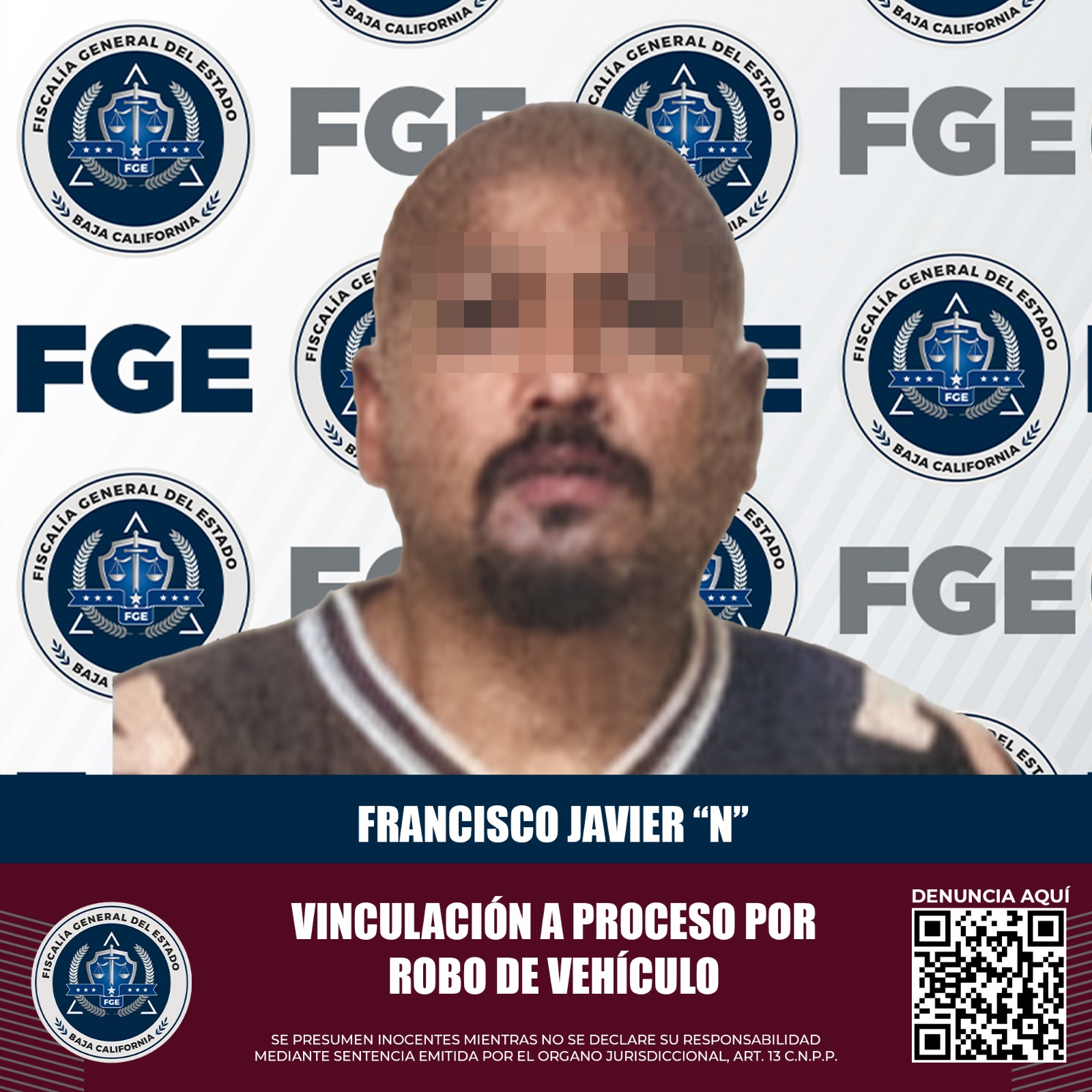 El 12 de diciembre del año en curso, se efectuó la audiencia de control de detención, en la cual el juez ratificó de legal la misma y vinculó a proceso al de nombre Francisco Javier “N”, por el delito de robo equiparado de vehículo de motor, en su modalidad de usar vehículo de motor robado, de igual forma, autorizó a la Fiscalía un mes de plazo para la investigación complementaria.