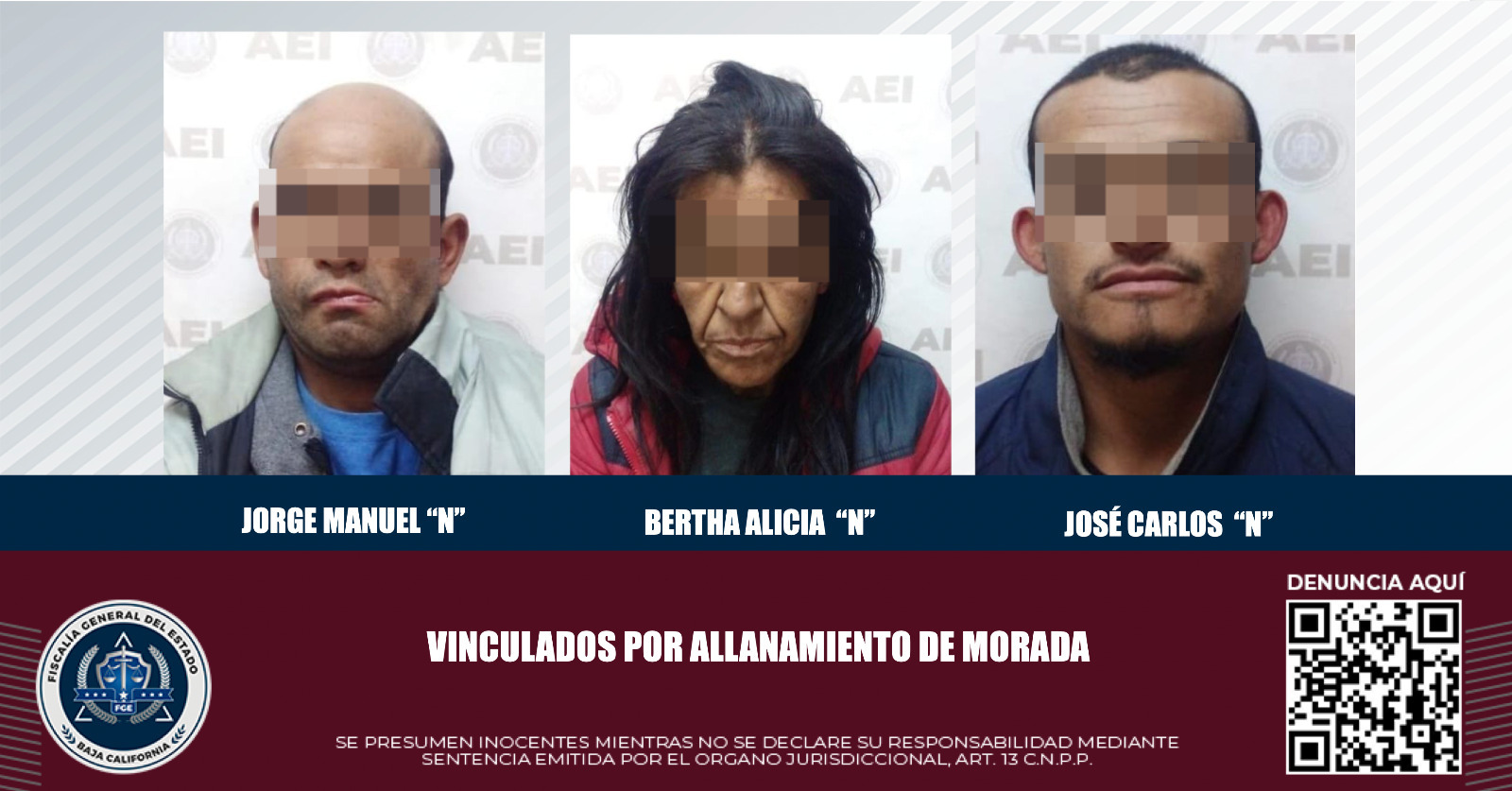 ENSENADA, B.C. Dos hombres y una mujer, quedaron vinculados a proceso tras ingresar ilícitamente a un predio asegurado por la Fiscalía General del Estado.