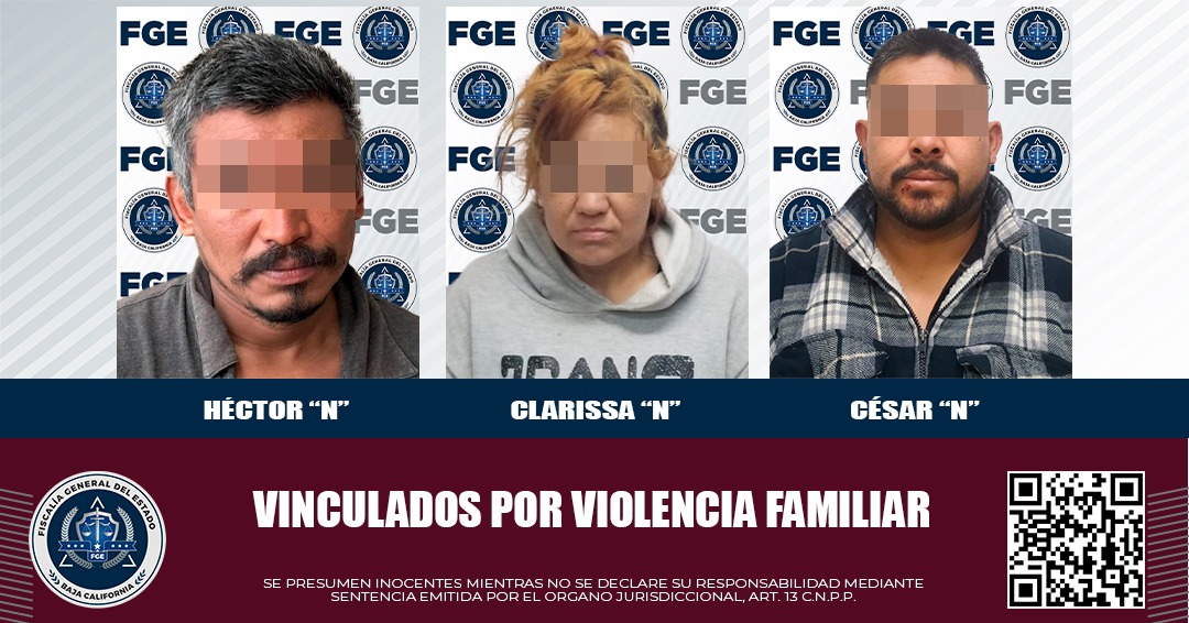 MEXICALI, B.C. La Fiscalía Regional de Mexicali, obtuvo con base en los elementos de prueba y alegatos presentados por la Unidad de Investigación Foránea de Ciudad Guadalupe Victoria, la vinculación a proceso de dos hombres y una mujer, acusados de agredir a sus familiares.