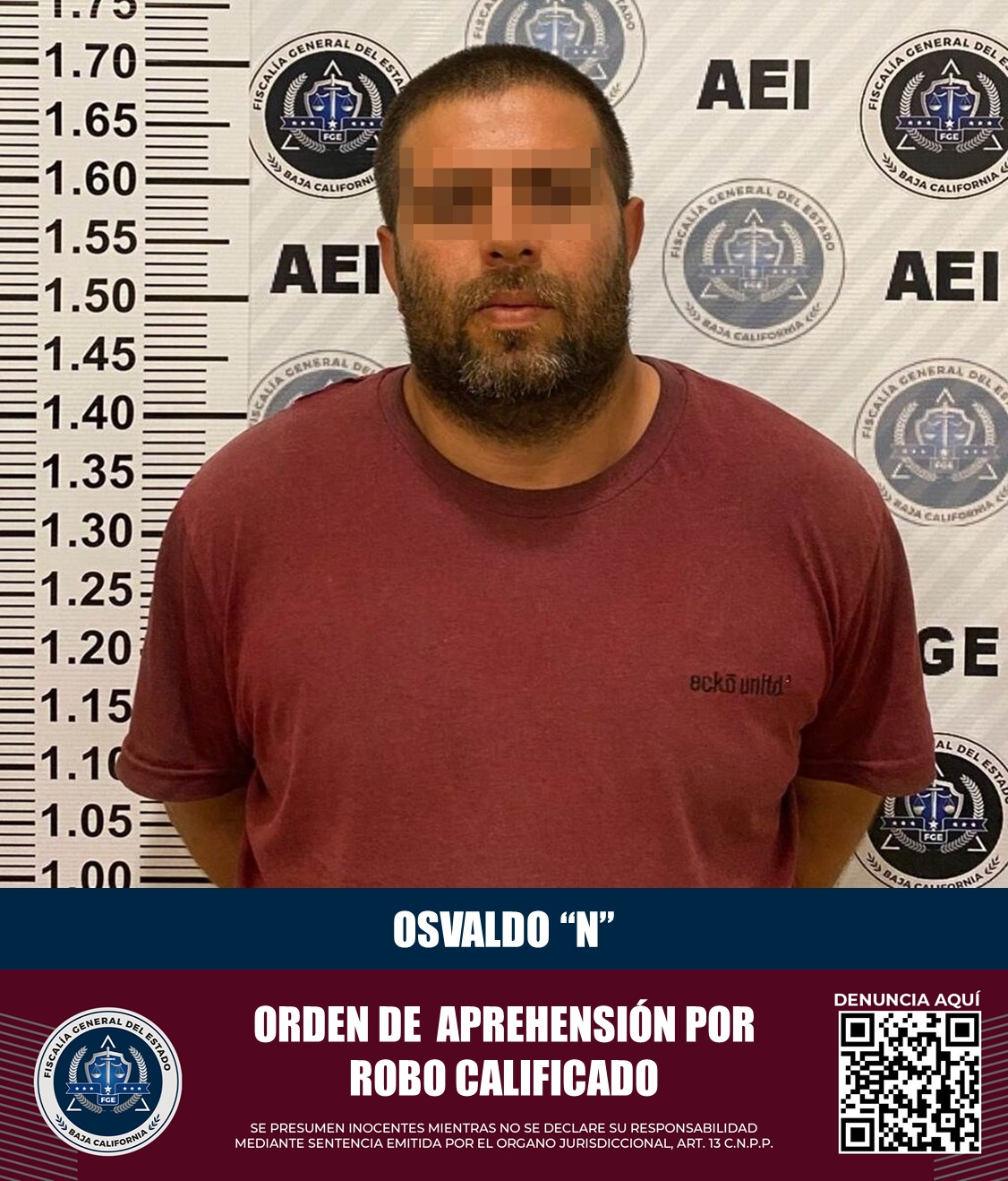 PLAYAS DE ROSARITO, B.C. Como resultado de una investigación por el delito de robo calificado a dependiente, llevada a cabo por la Fiscalía General del Estado (FGE), Osvaldo "N" fue localizado y detenido en la ciudad de Tijuana. Deberá responder ante un juez por el ilícito que se le imputa.