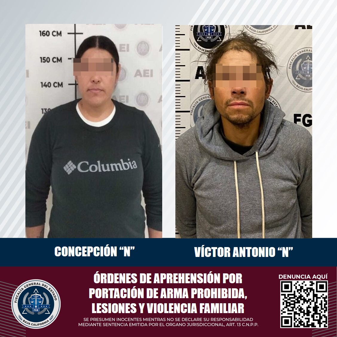 Por su parte, Víctor Antonio “N”, de 36 años de edad, fue detenido en el municipio de Tijuana, ya que contaba con una orden de arresto por la posible comisión del delito de portación de arma prohibida. Una vez asegurado, los agentes de la FGE le cumplimentaron el mandato judicial.