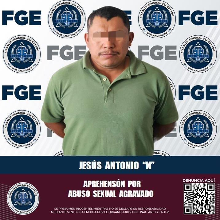 ENSENADA, B.C. La Fiscalía General del Estado (FGE), a través de la Agencia Estatal de Investigación (AEI), logró la captura de un presunto abusador sexual, cuya orden de aprehensión fue girada por un Juez del Estado de Sonora.