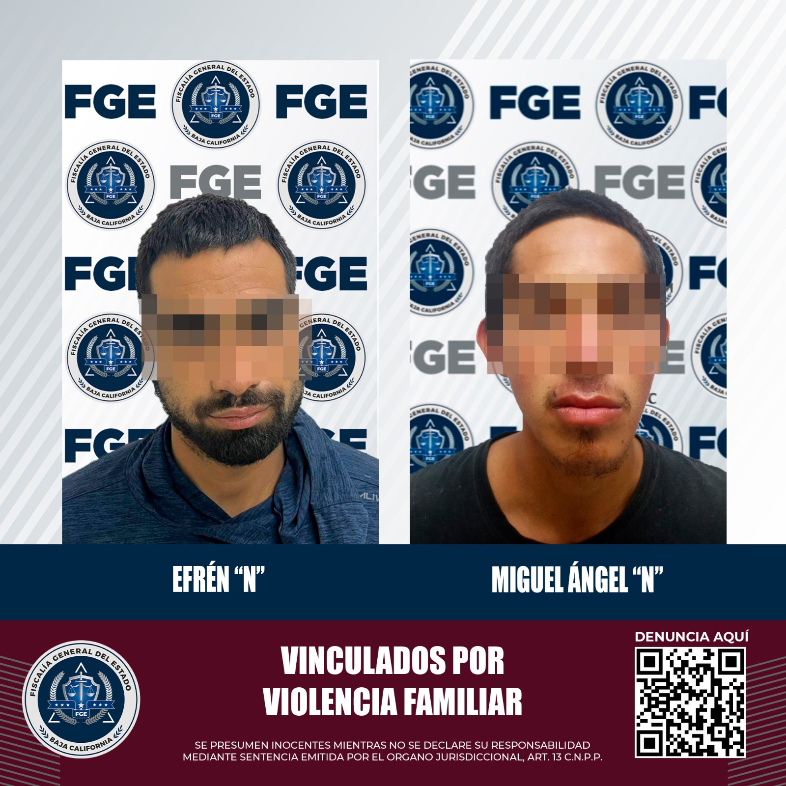 MEXICALI, B.C. Después de presentar carpetas de investigación fortalecidas, la Fiscalía Regional de Mexicali obtuvo la vinculación a proceso de dos acusados de ejercer actos de violencia en contra de integrantes de su familia.